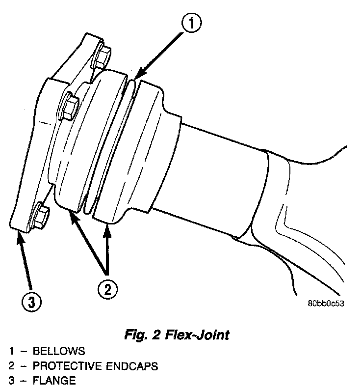 An exhaust flex-joint coupling is used to secure the catalytic converter to the exhaust manifold by using four fasteners and a gasket for sealing. This coupling actually moves back and forth as the engine moves, preventing breakage that could occur from the back and forth motion of a transverse mounted engine.