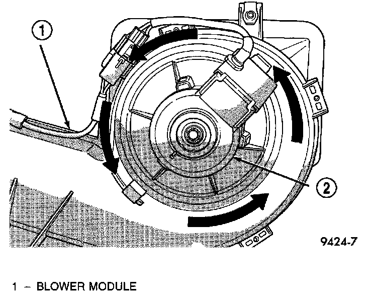 The blower motor is located on the bottom right side of the unit housing. The blower motor can be removed from the vehicle without having to remove the unit housing assembly.REMOVAL