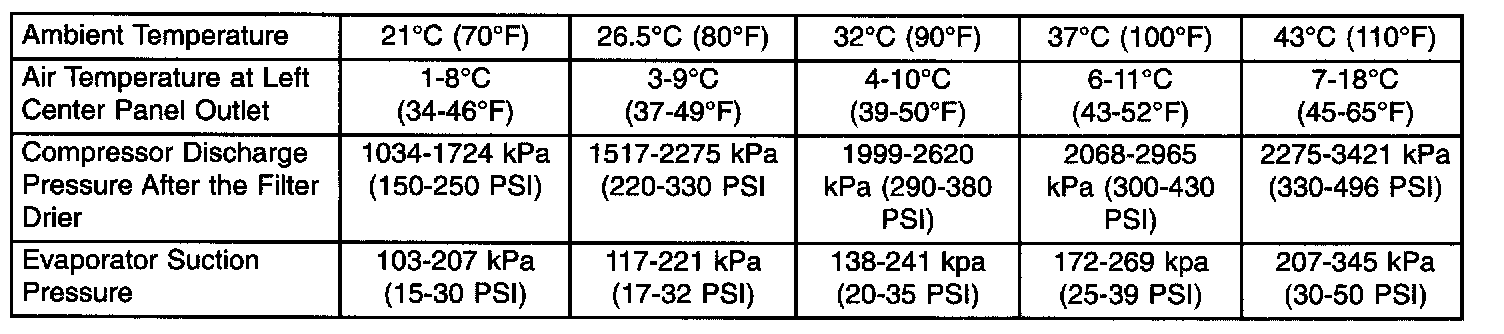 Review Safety Precautions and Warnings before proceeding with this procedure. Air temperature in test room and on vehicle must be 210 °C (70 °F) minimum for this test.A/C Performance Temperatures: