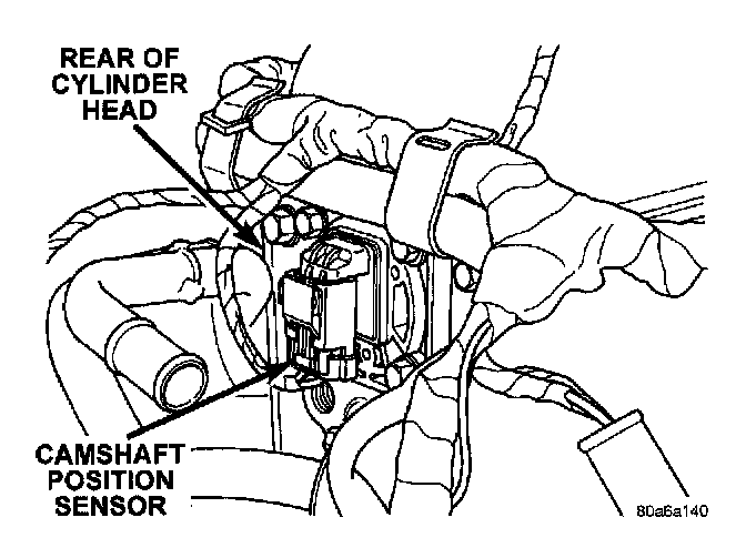 The Camshaft Position Sensor is mounted to the rear of the cylinder head.