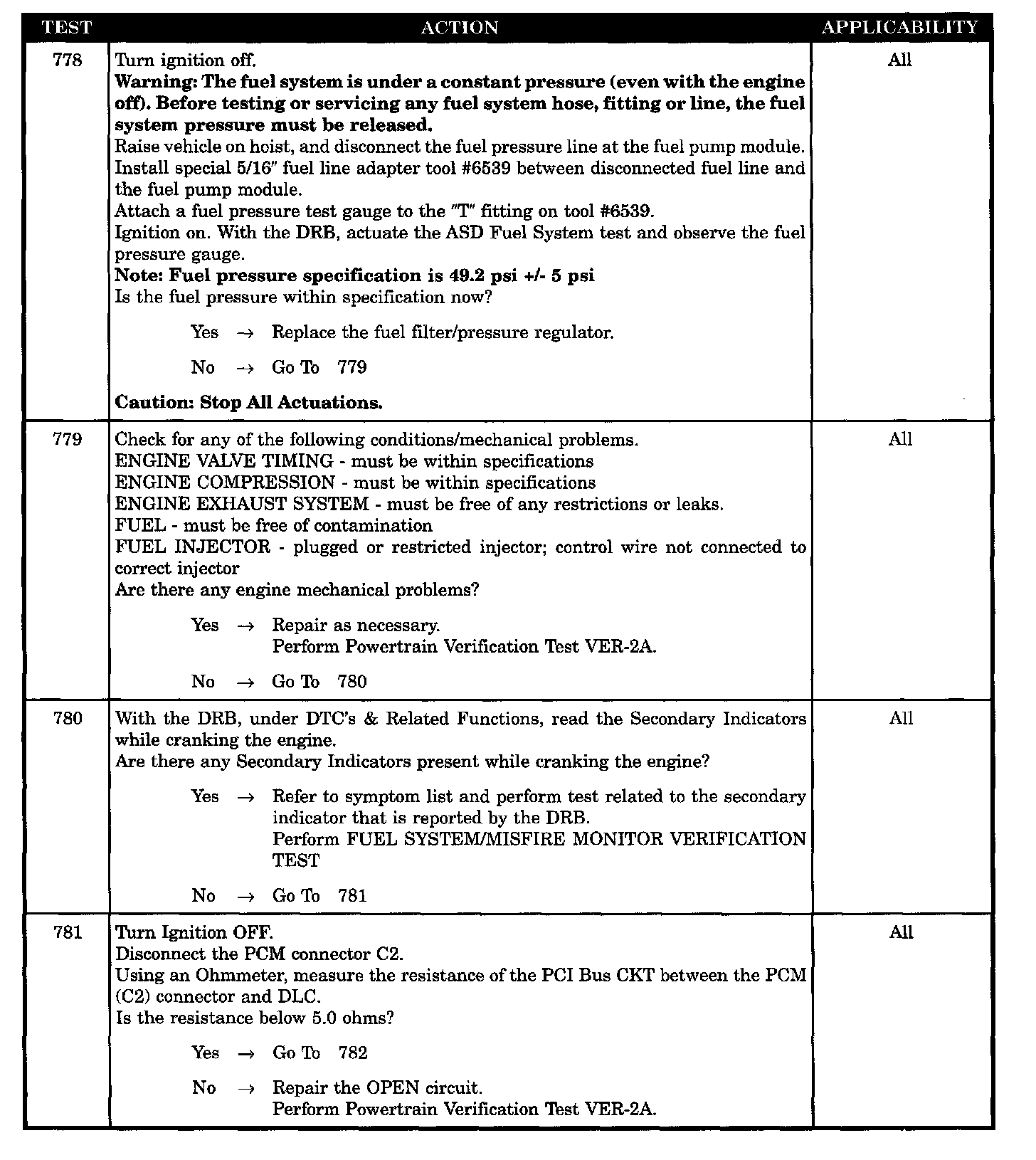 Tests 778 - 781: