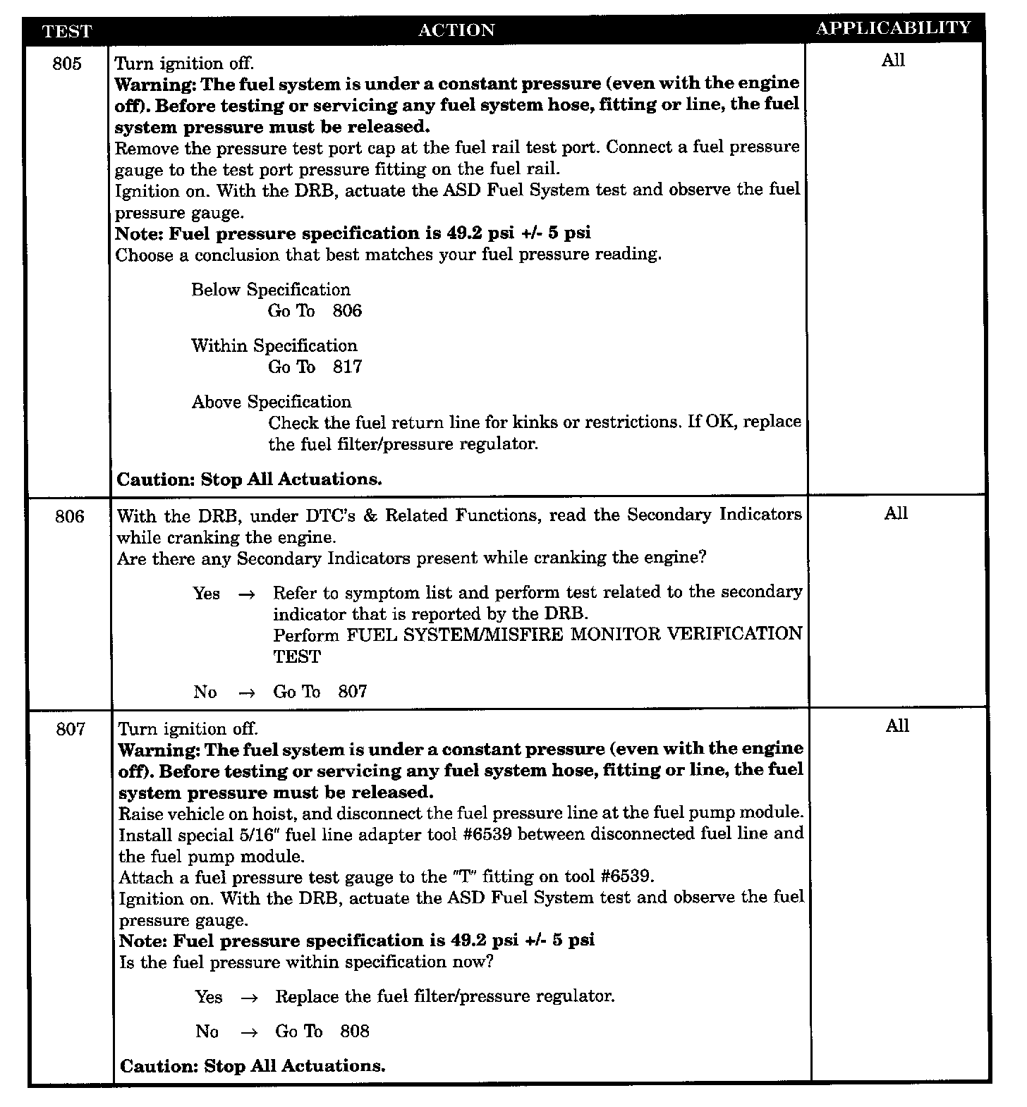 Tests 805 - 807: