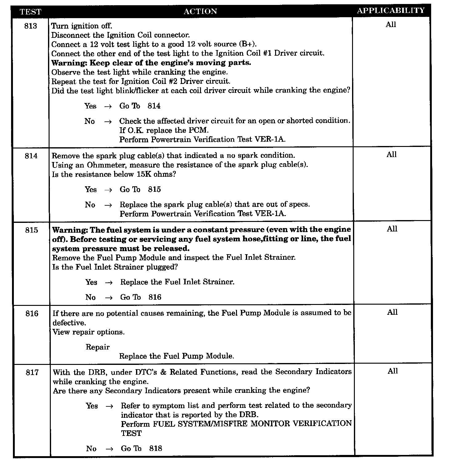 Tests 813 - 817: