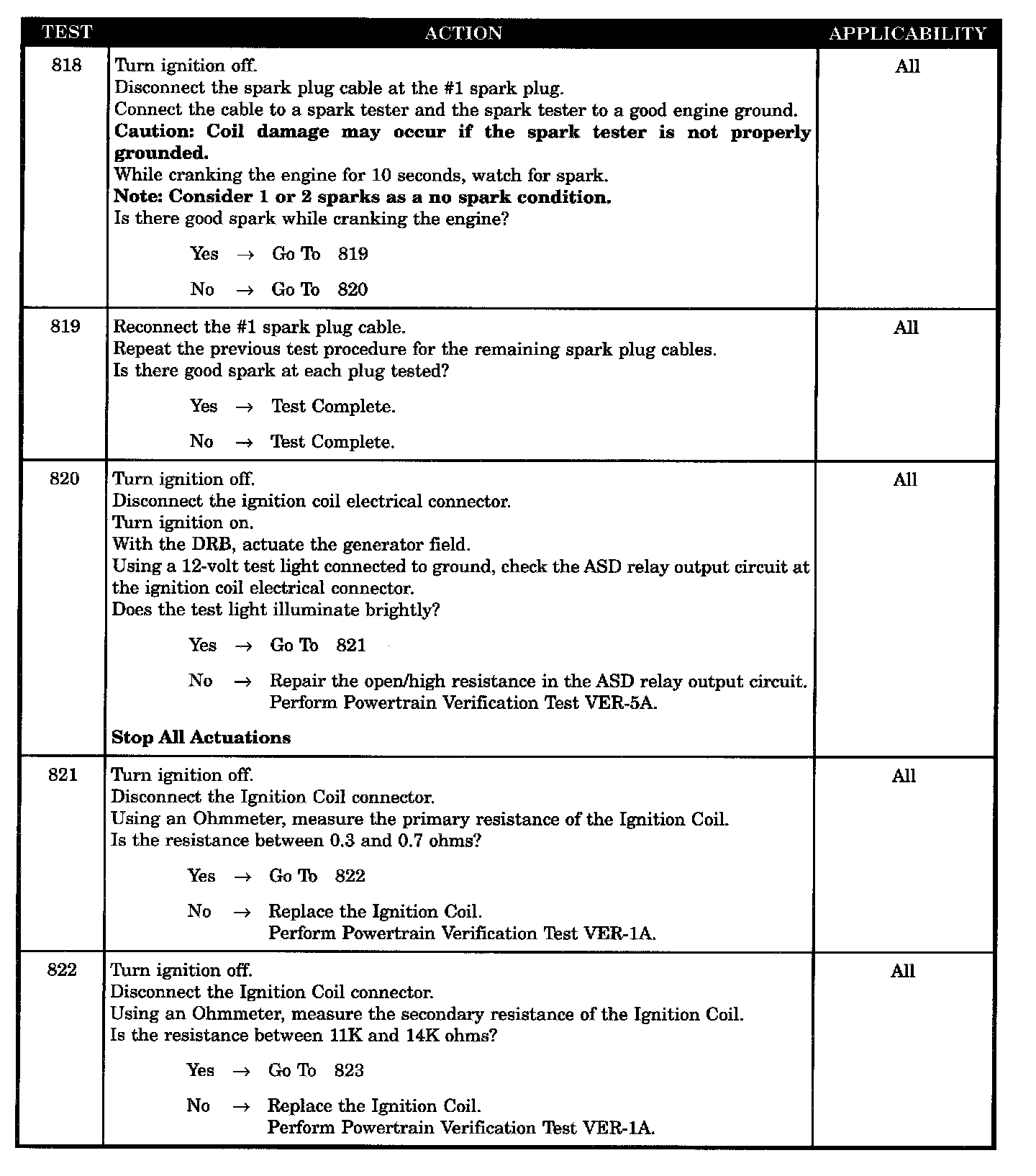 Tests 818 - 822: