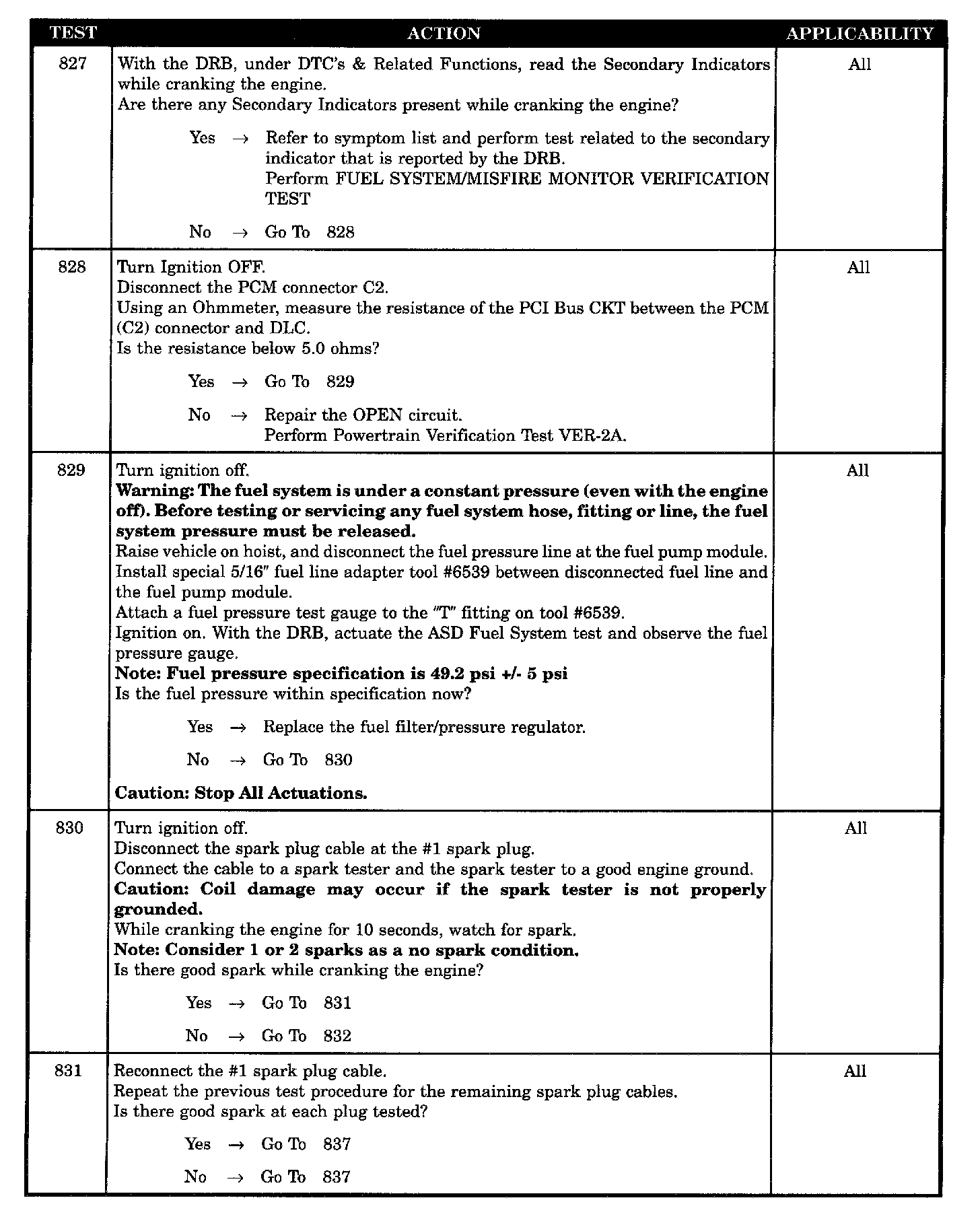 Tests 827 - 831: