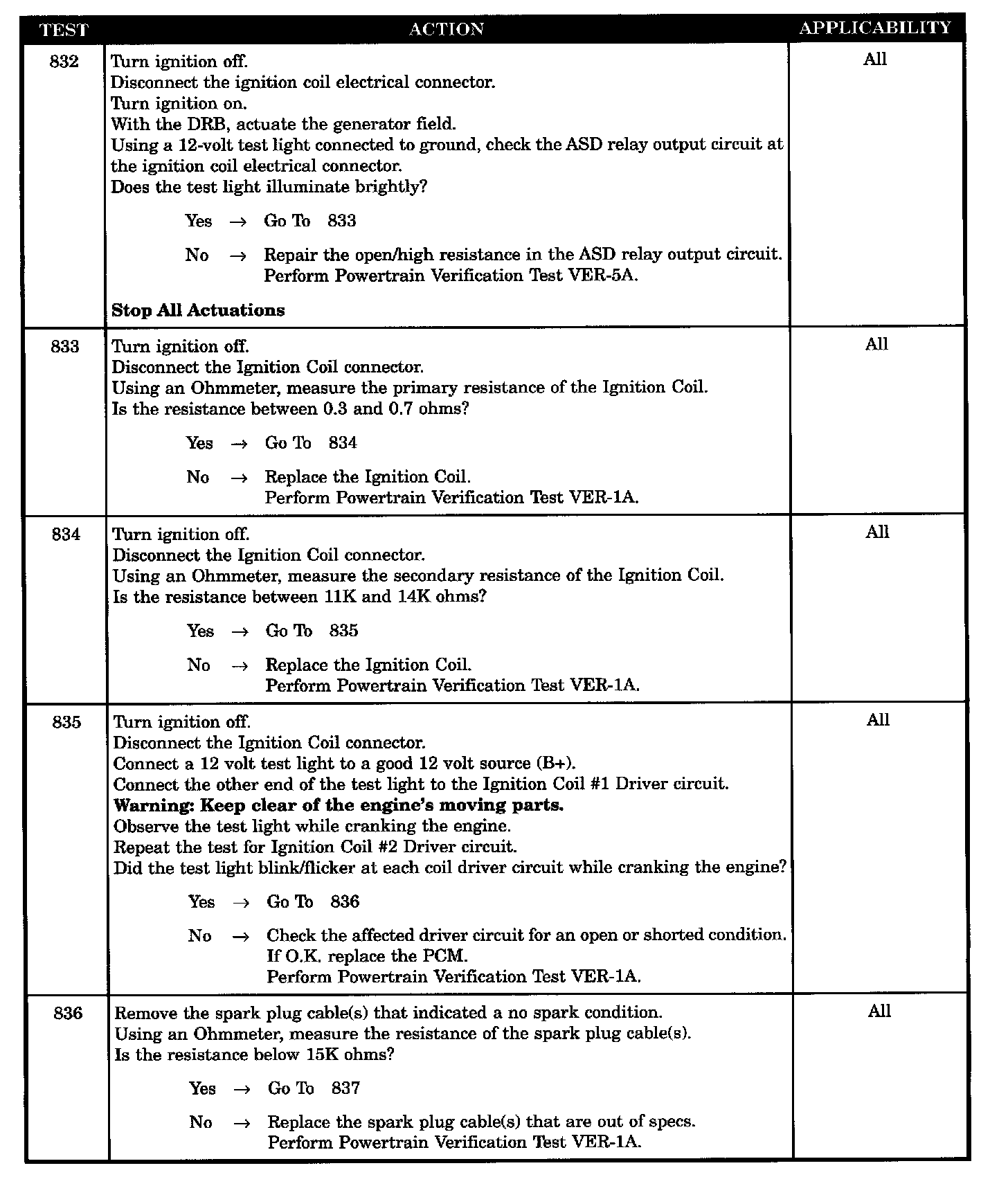 Tests 832 - 836: