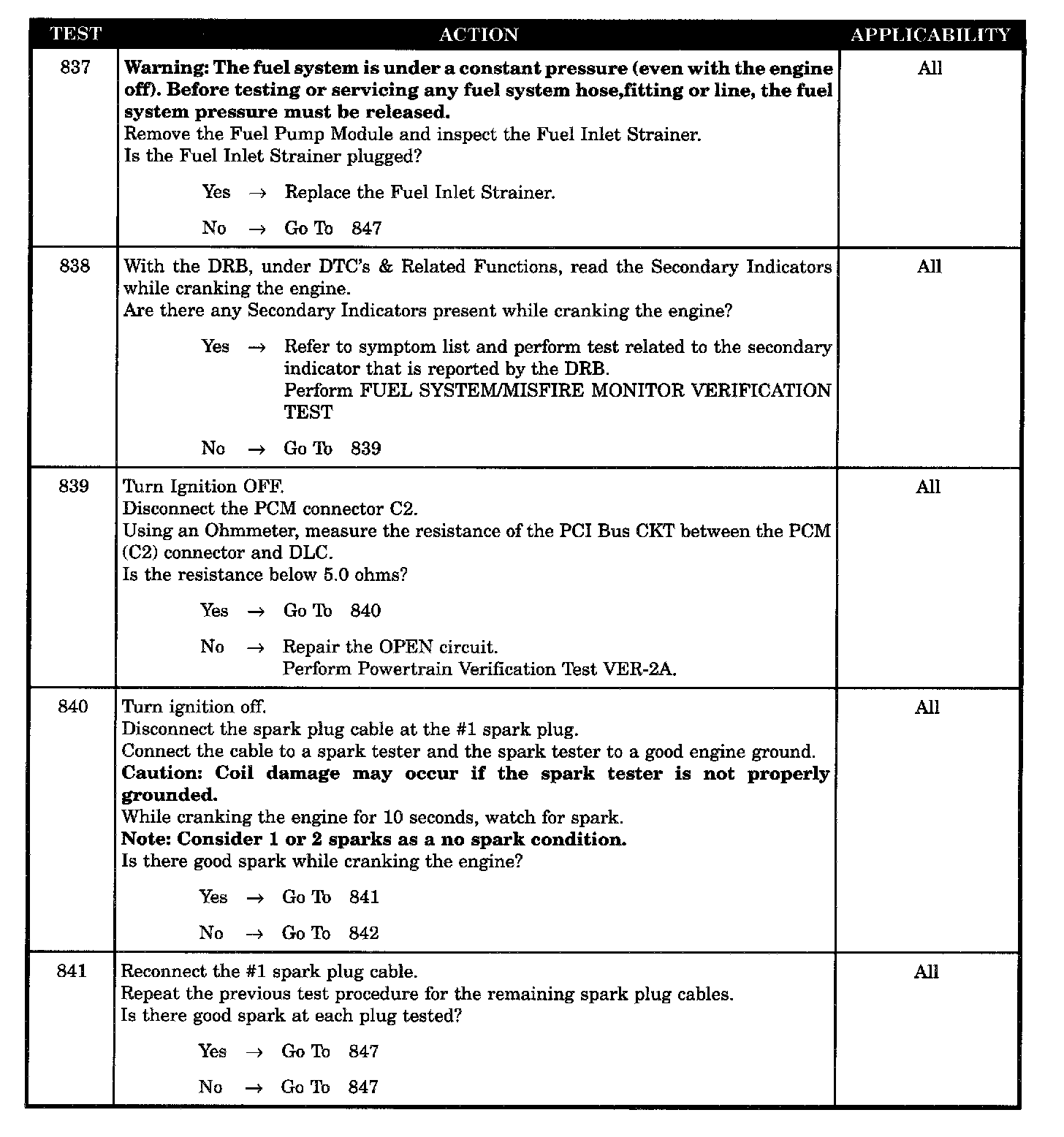 Tests 837 - 841: