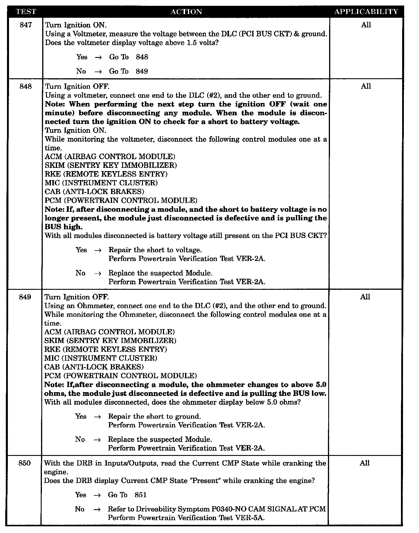 Tests 847 - 850: