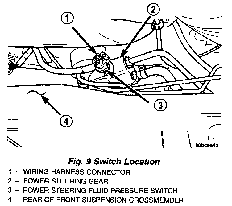 3. Locate the power steering fluid pressure switch on the back side of the power steering gear.
