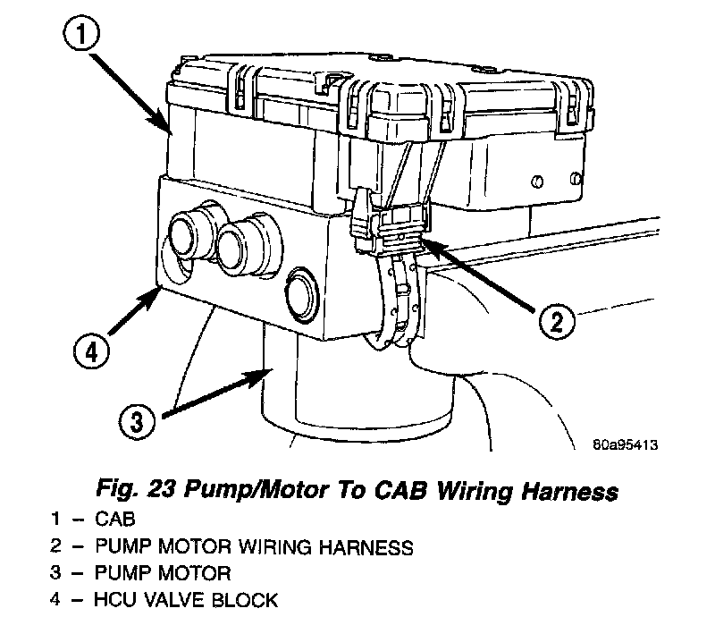 2. Disconnect the pump/motor wiring harness from the CAB.
