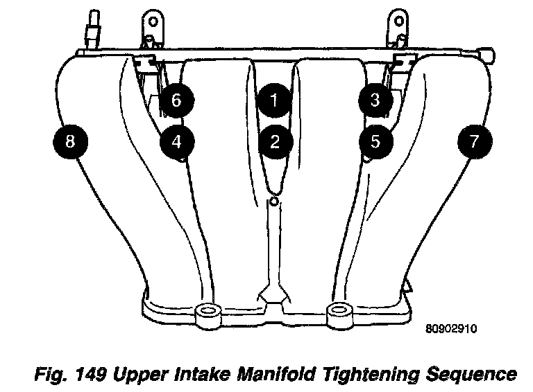 Tighten upper intake manifold fasteners in sequence shown. Torque to