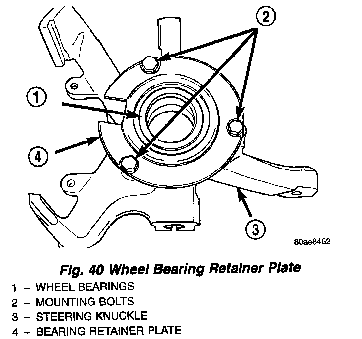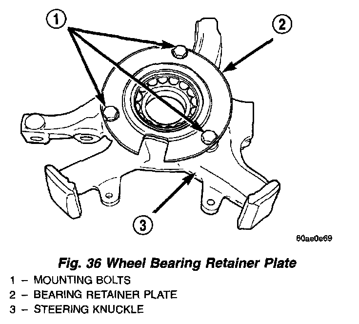 NOTE: Only the original or identical replacement bolts are to be used to mount the bearing retainer plate to the steering knuckle.
