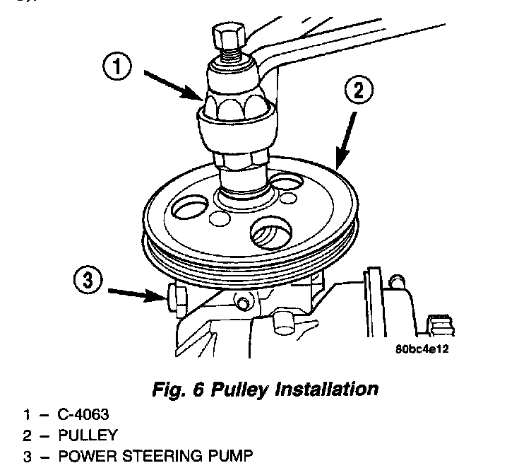 NOTE: Replace the power steering pump pulley if it is cracked or loose.