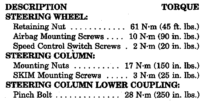 Steering Column: Specifications