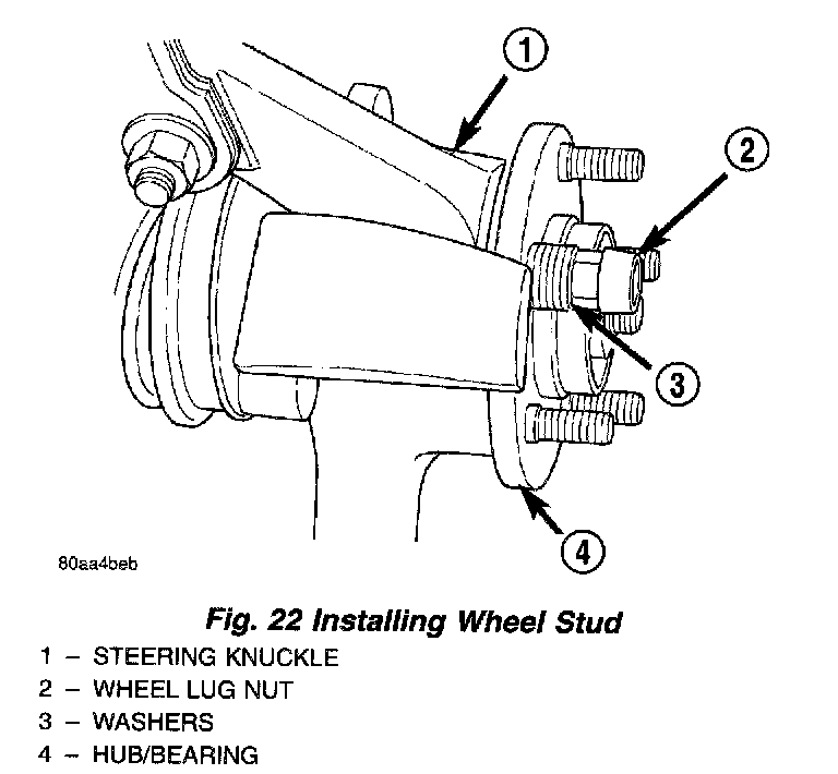 NOTE: Before proceeding with this procedure, review SERVICE WARNINGS AND CAUTIONS found under Service Precaution.Use the following procedure to remove and install one of five studs on one wheel hub.