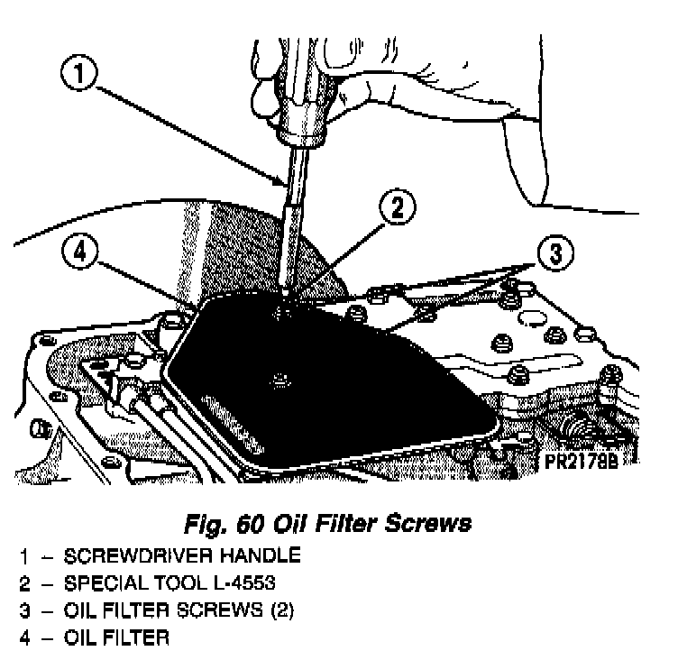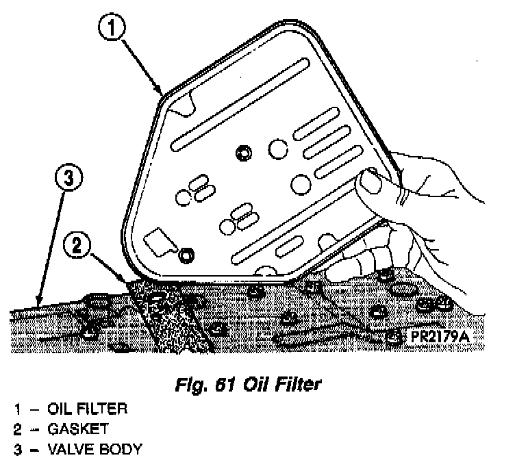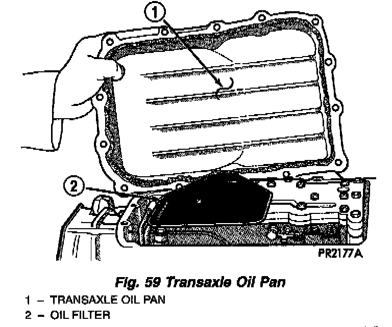 Put sealant on the oil pan flange (Fig. 59) and on all oil pan bolts (underside of bolt head).