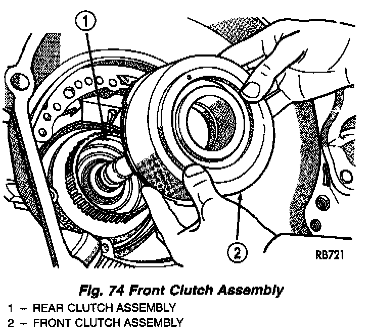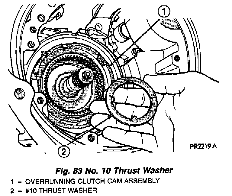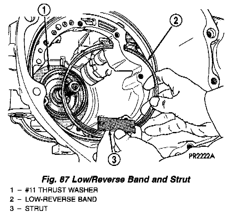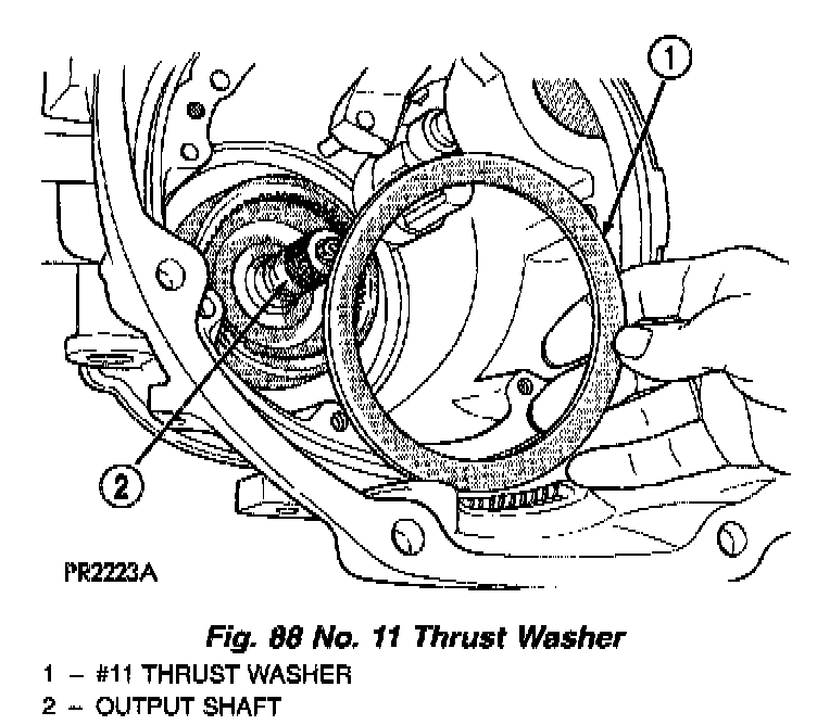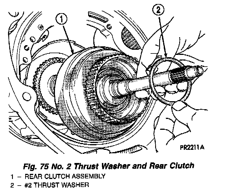 Measuring input shaft end play before disassembly will usually indicate if a thrust washer change is required (Fig. 66). The # 3 thrust washer is located between input and output shafts.