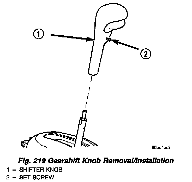 1. Loosen set screw and remove knob from shifter handle (Fig. 219).