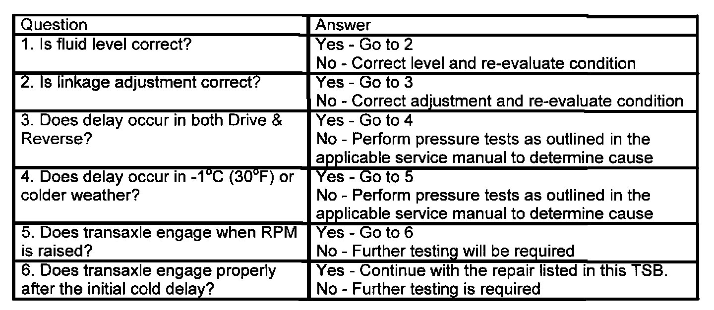 This bulletin involves diagnosing delayed engagement and if necessary, replacing the front pump assembly with a revised part.