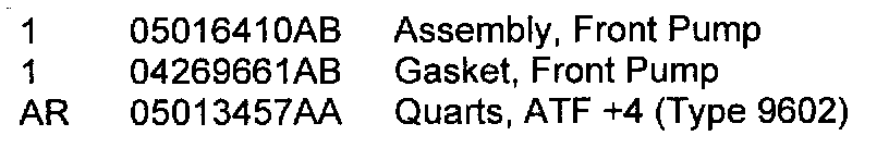1. Using the procedures outlined in the applicable service manual, replace the front pump with p/n 05016410AB.