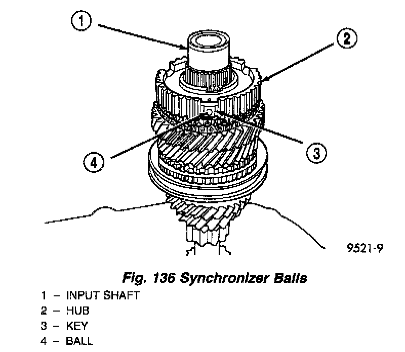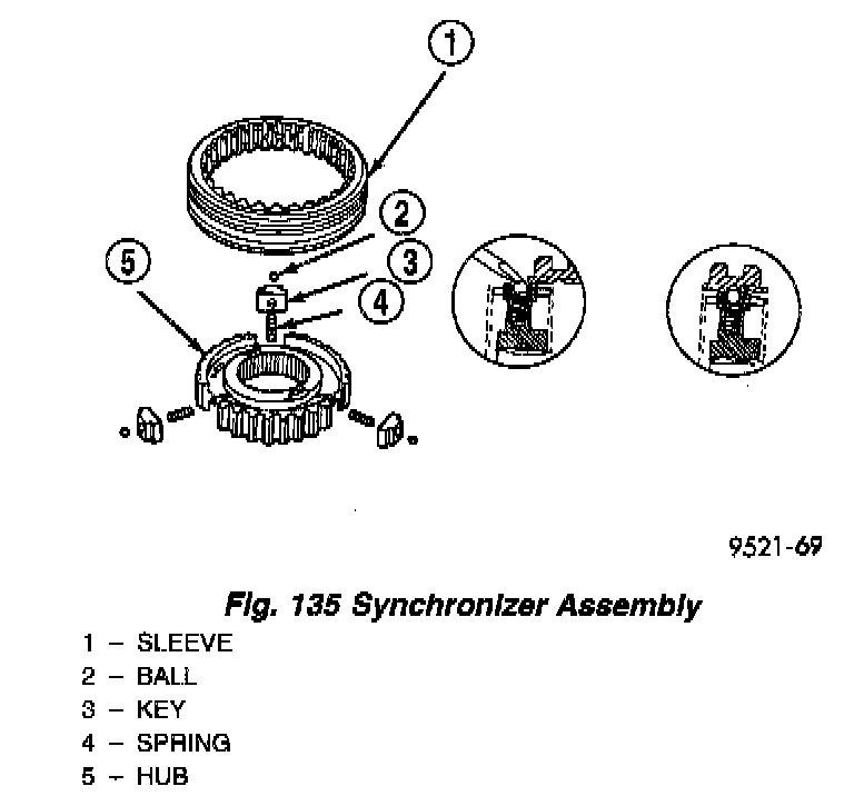 DISASSEMBLYPlace synchronizer in a clean shop towel and wrap. Press on inner hub. Carefully open up shop towel and remove springs, balls, keys, hub, and sleeve.