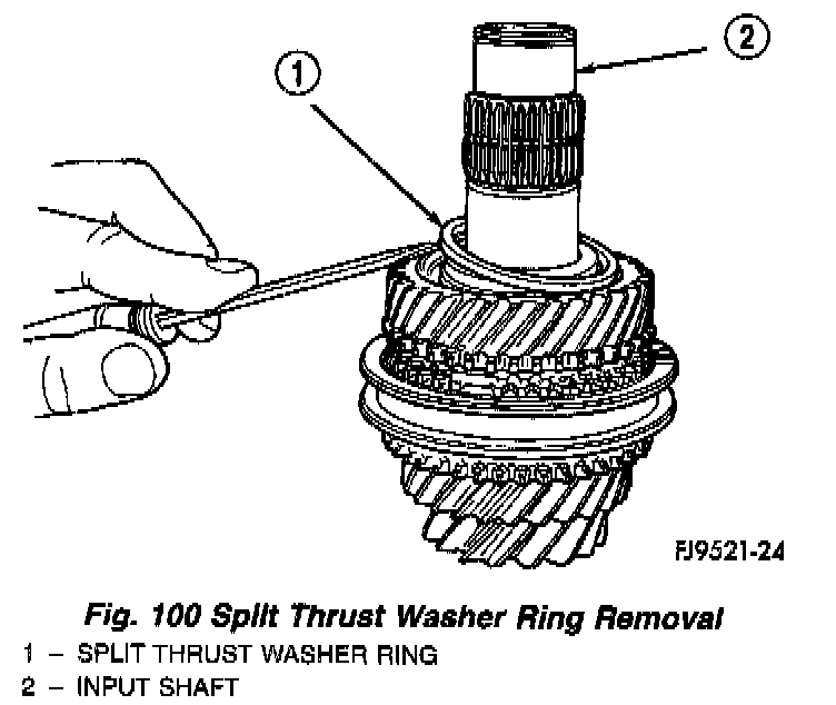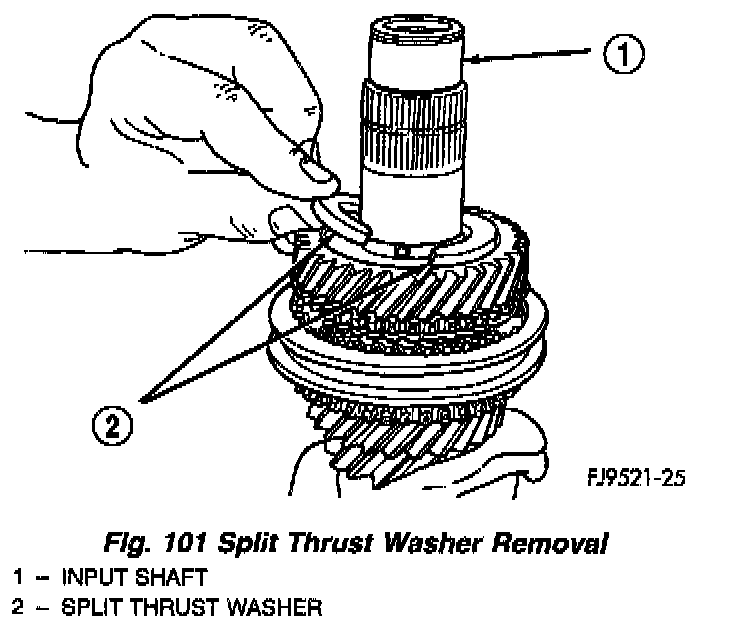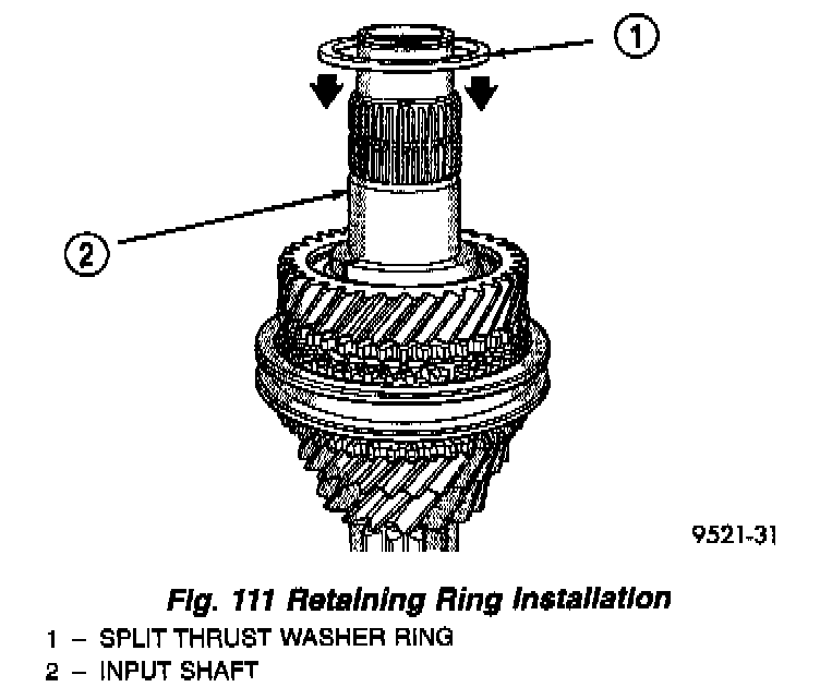 8. Install split thrust washer onto input shaft (Fig. 110).