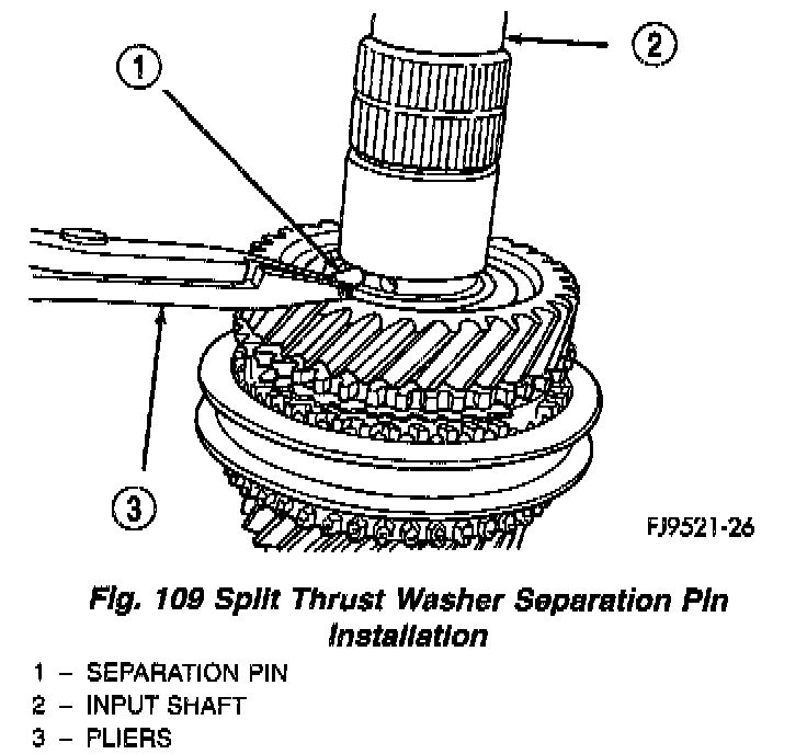 7. Install 4-5 split thrust washer separation pin (Fig. 109).