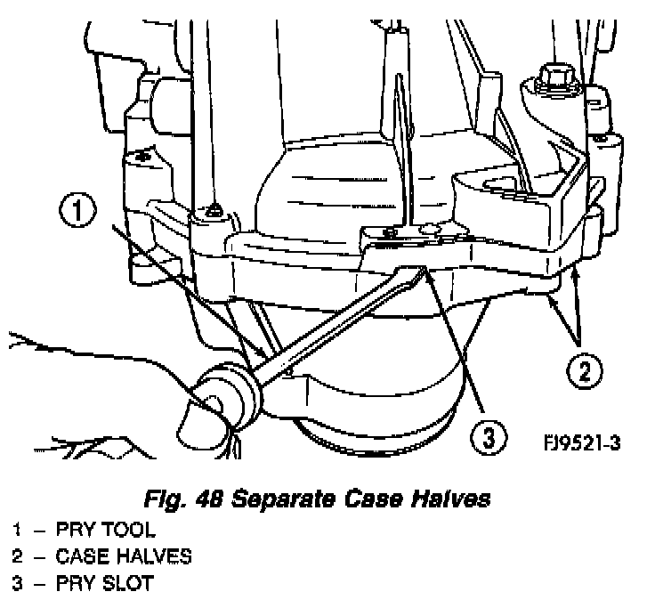 5. Place two screwdrivers into the slots provided in the case halves near the dowels (Fig. 47). Separate the case halves (Fig. 48).