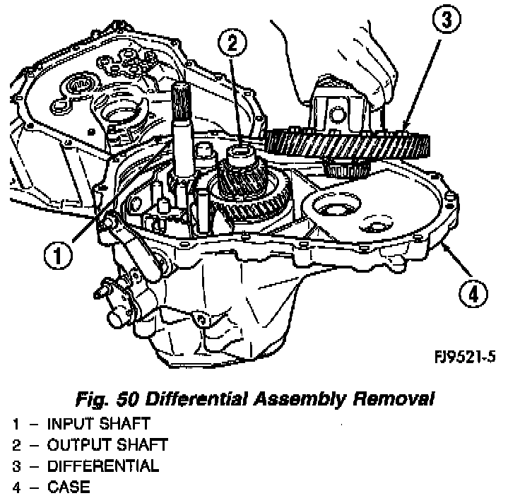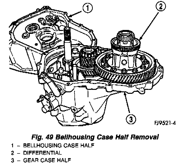The NV T360 (A-578) transaxle internal components can be serviced only by separating the gear case from the bell housing case.CAUTION: The transaxle output shaft is serviced as a unit. No disassembly and reassembly is possible. Damage to the transaxle may result.