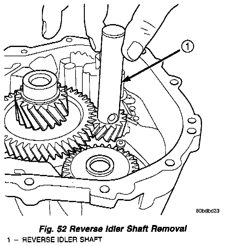 11. Remove reverse idler gear and spacer (Fig. 53).