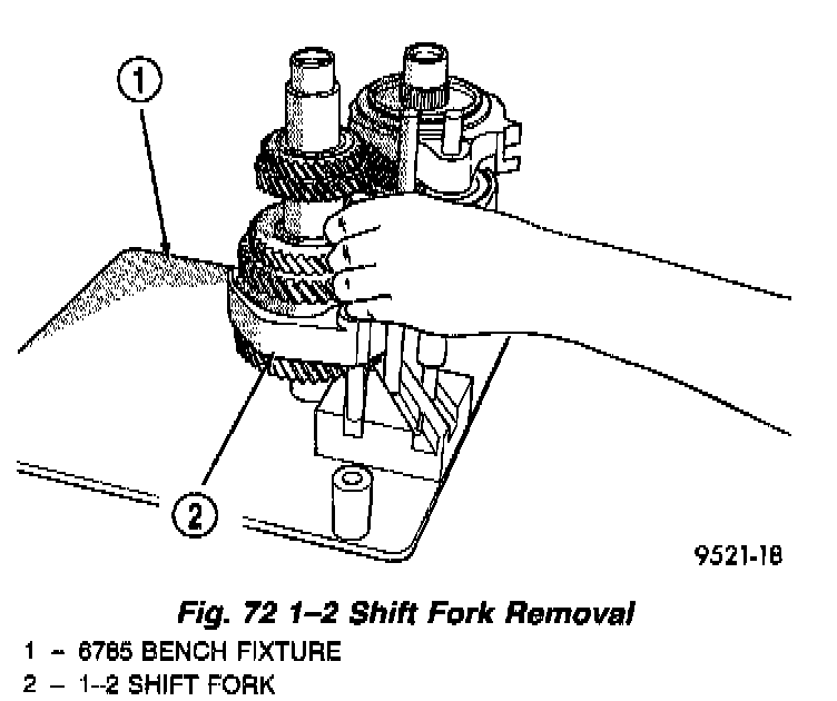 24. Remove the 1-2 shift fork from the output shaft (Fig. 72).