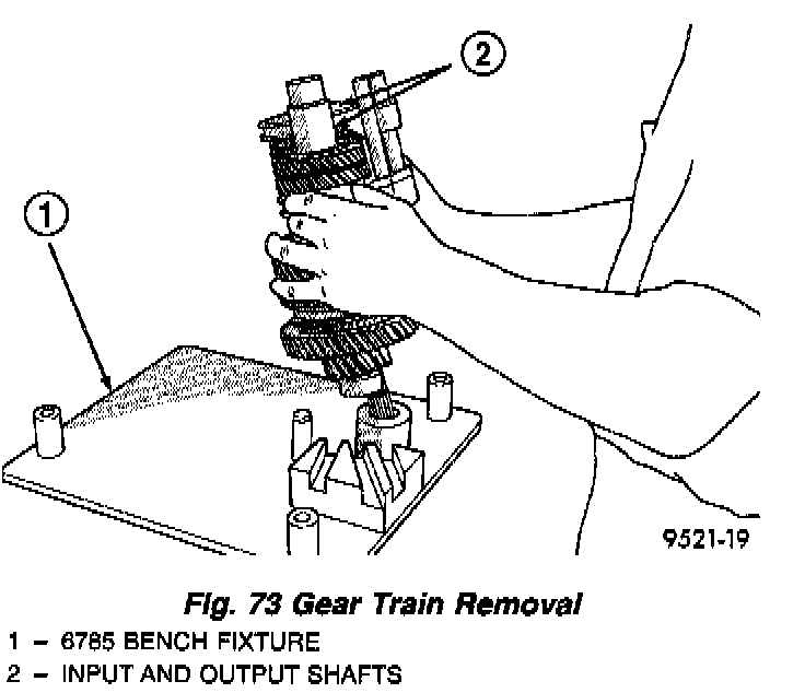 25. Remove input and output shaft assemblies from bench fixture (Fig. 73).