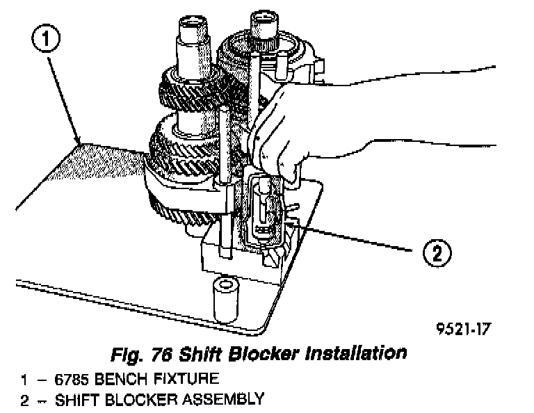 3. Install shift blocker assembly into bench fixture (Fig. 76).