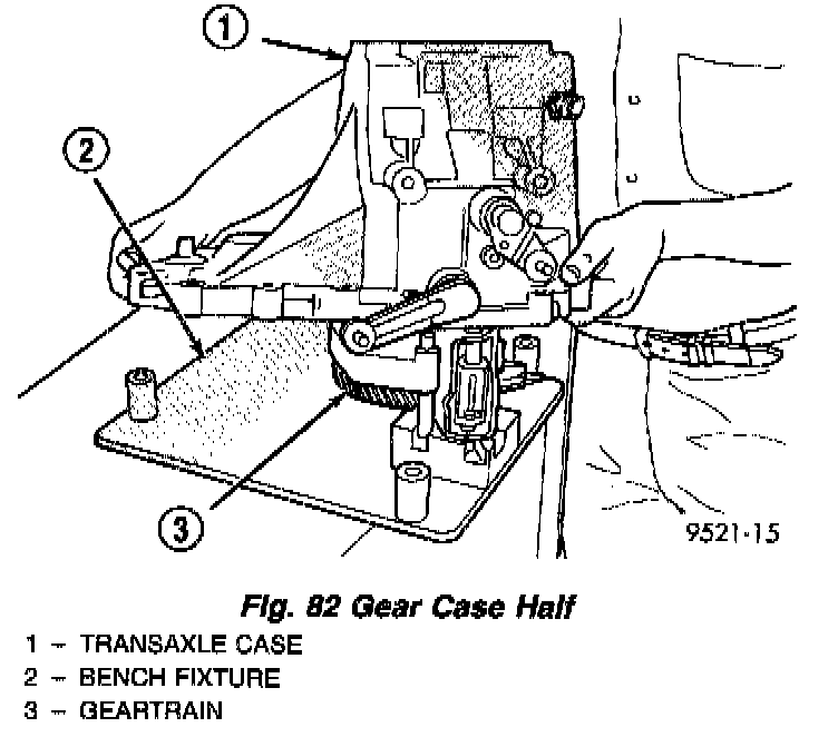 9. Install gear-case half over bench fixture (Fig. 82). Line up shift finger over 3-4 lug.