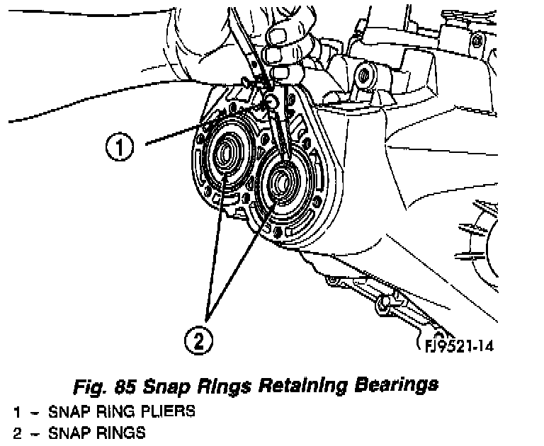 12. Install shaft snap rings at input and output bearings (Fig. 85).