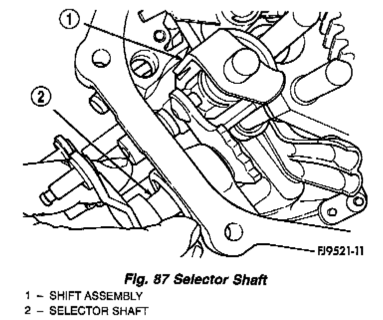 16. Turn selector shaft into slot on blocker assembly (Fig. 87).