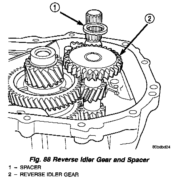 18. Install reverse idler gear and spacer as shown in (Fig. 88)