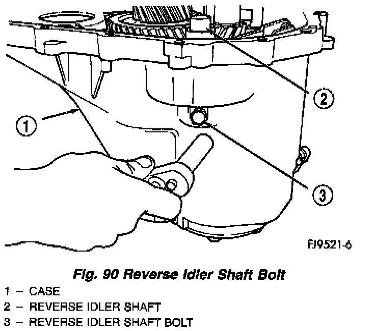 9. Remove reverse idler shaft bolt (Fig. 51).