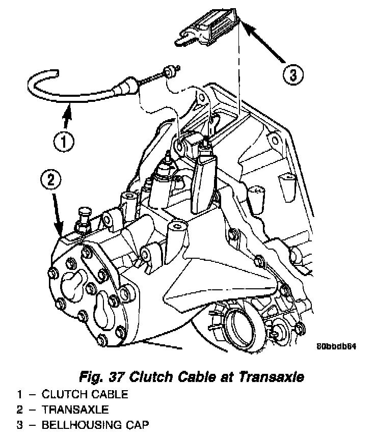 8. Disconnect clutch cable from fork and remove from transaxle (Fig. 37).