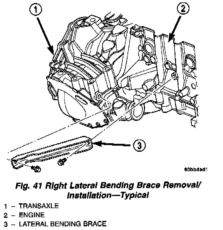 18. Remove the right engine-to-transaxle lateral bending brace (Fig. 41).