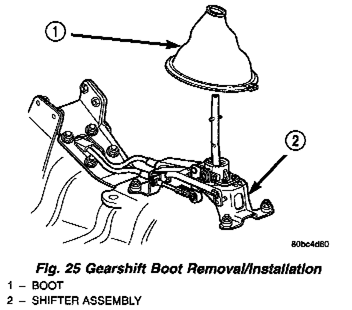 4. Separate shifter boot from shifter assembly (Fig. 25). Boot is retained to shifter by three push-pin retainers.