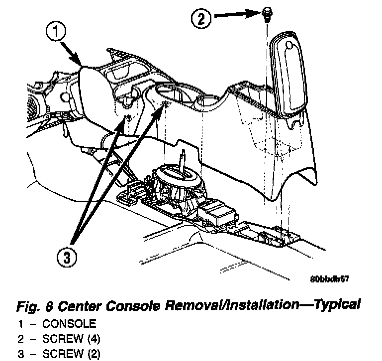 3. Remove the center console assembly as shown in (Fig. 8).