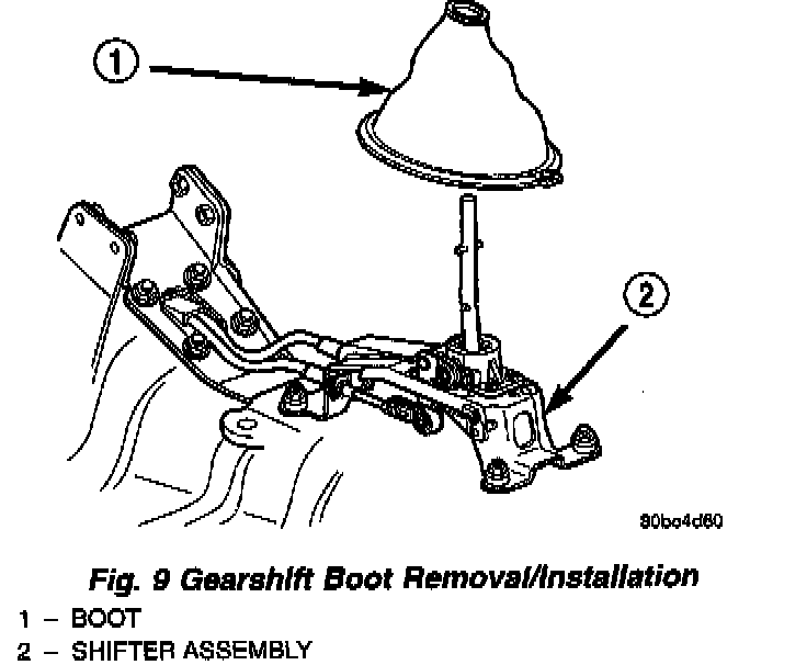 4. Separate shifter boot from shifter assembly (Fig. 9). Boot is retained to shifter by three push-pin retainers.