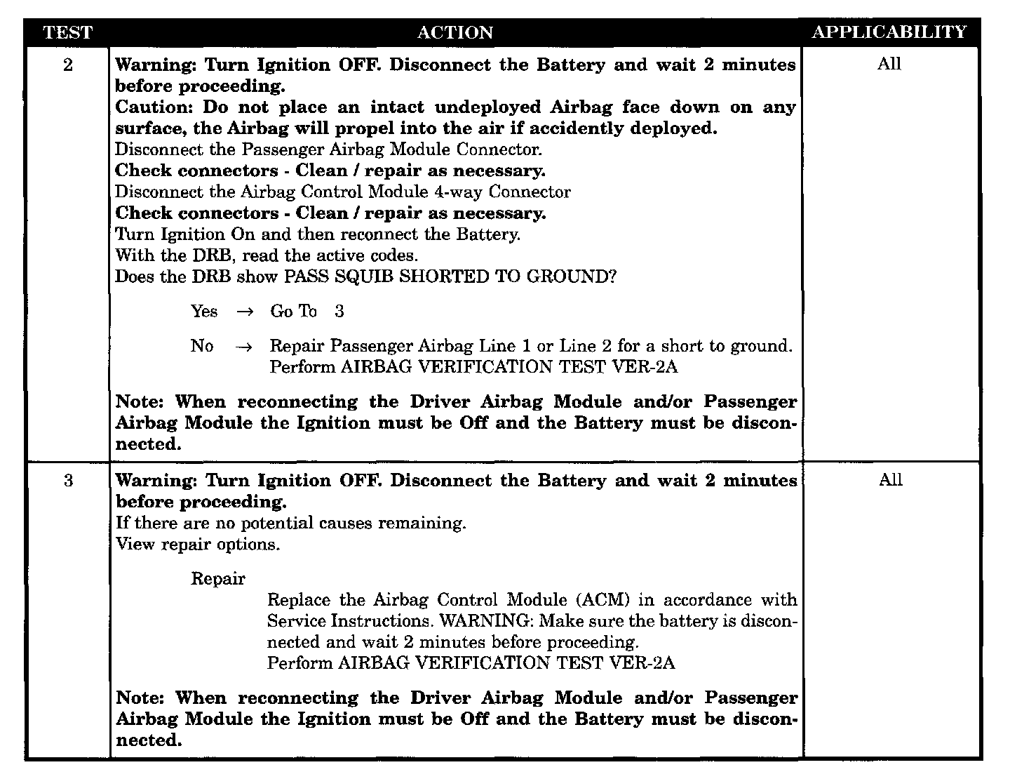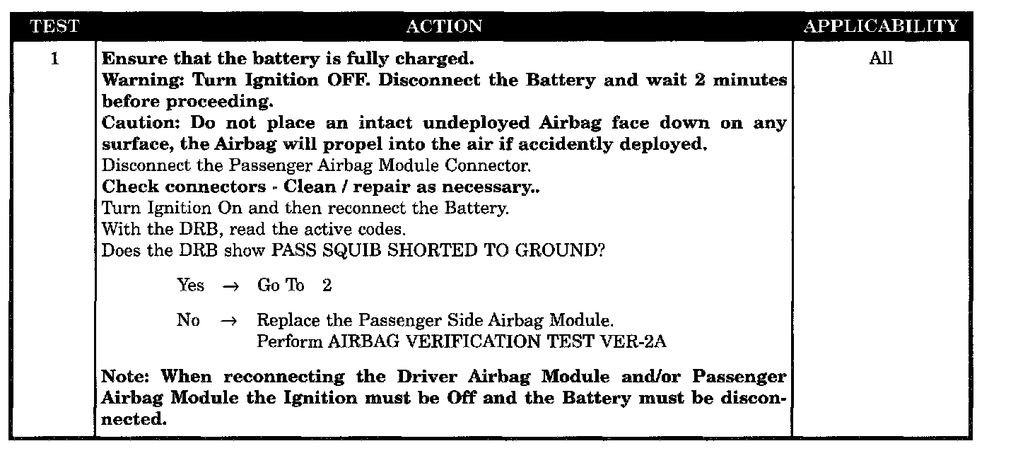 - Passenger airbag line 1 or line 2 short to ground