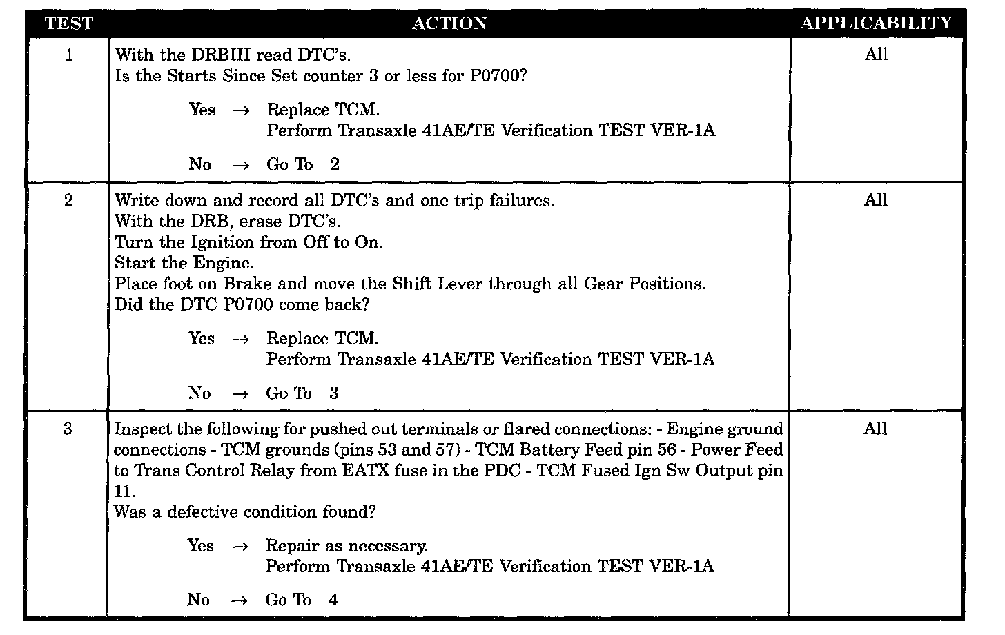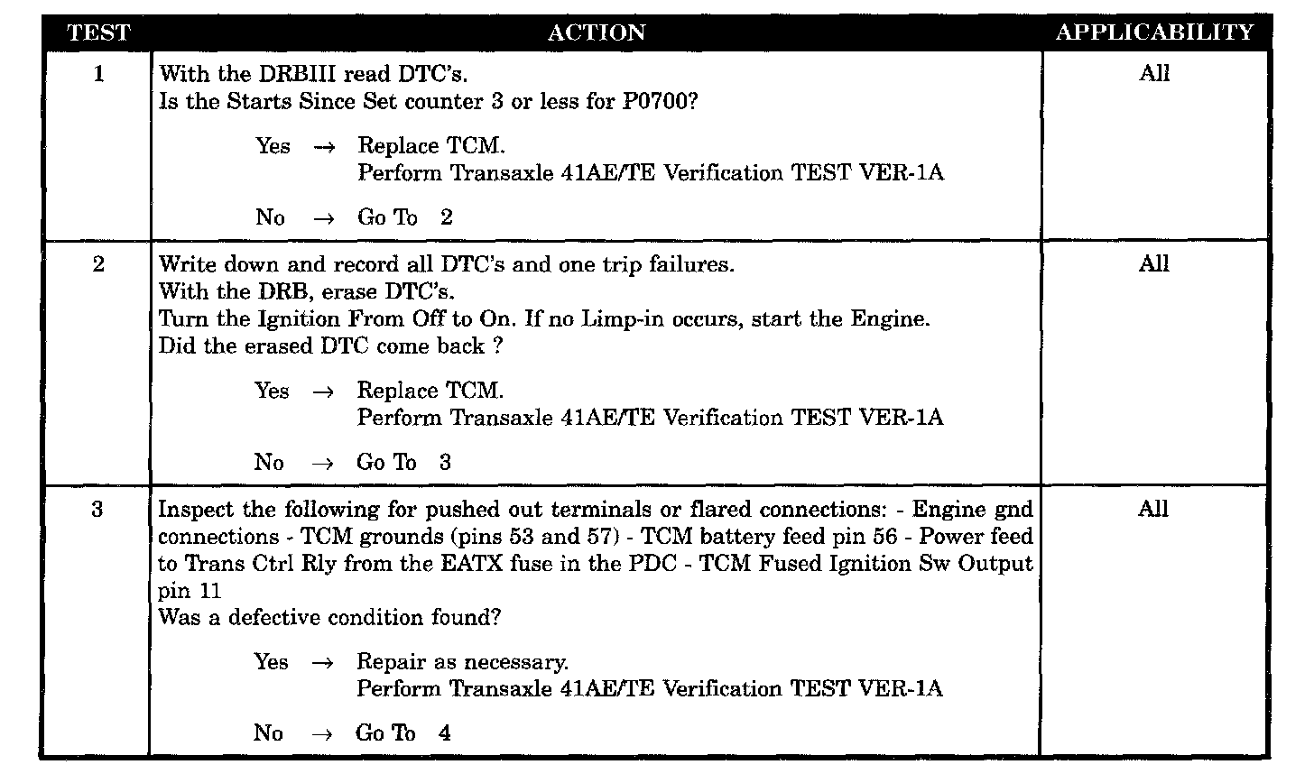INTERMITTENT CODE P0700