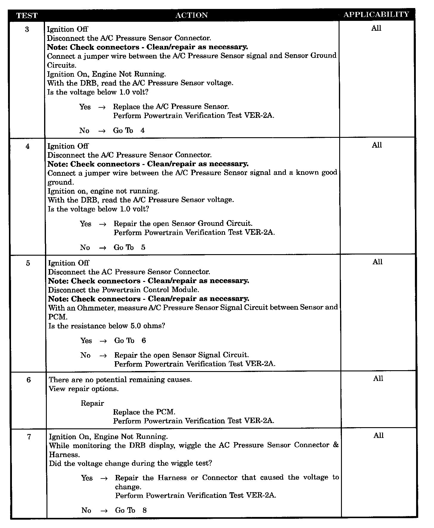 - AC pressure sensor harness intermittent defect