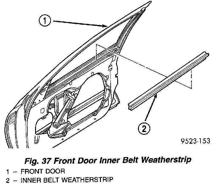 3. Remove inner belt weatherstrip from vehicle (Fig. 37).