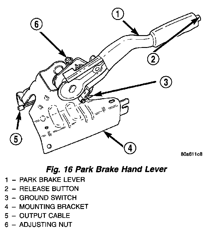 DESCRIPTIONAll vehicles are equipped with a center mounted, hand operated park brake lever. The park brake lever is located in the vehicle, between the driver and passenger seat, and mounted to the console bracket which is welded to the floor pan.