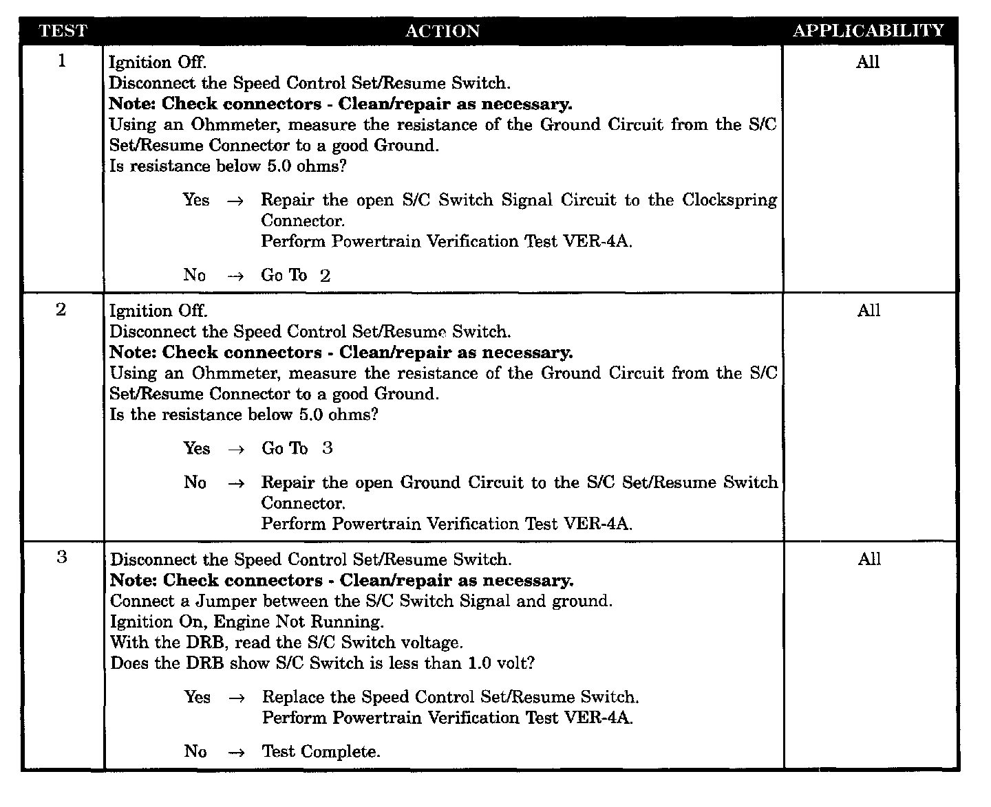 ^ Ground circuit to S/C SET/RESUME switch connector open