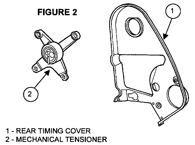 2. Remove and discard the mechanical timing belt tensioner assembly and rear-timing belt cover (Figure 2). Save the bolts that were used to mount the mechanical tensioner to the engine.